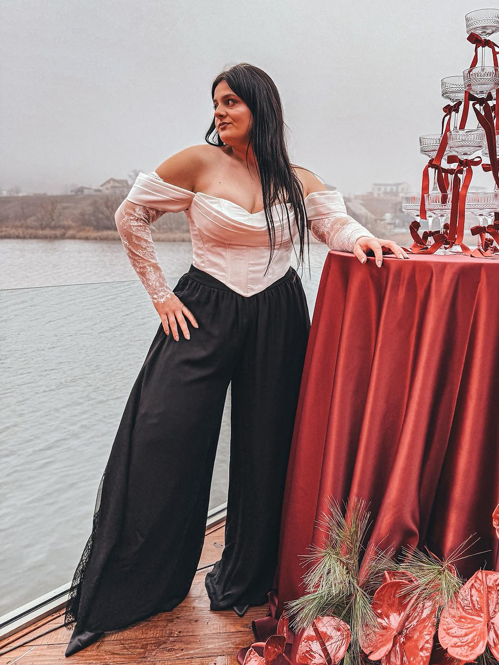 COMPLEU CORSET SI PANTALON CU MANECI CHANTILLY