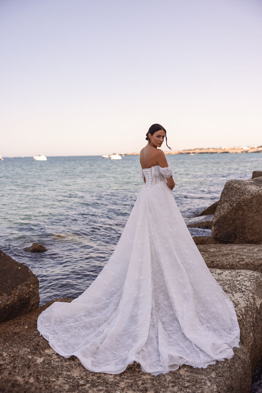 ROCHIE DE MIREASA LAVANDER M282 este realizată din dantelă fină cu broderii delicate și corset evidențiat prin aplicații prețioase, rochia pune în valoare silueta prin designul său rafinat și feminin.