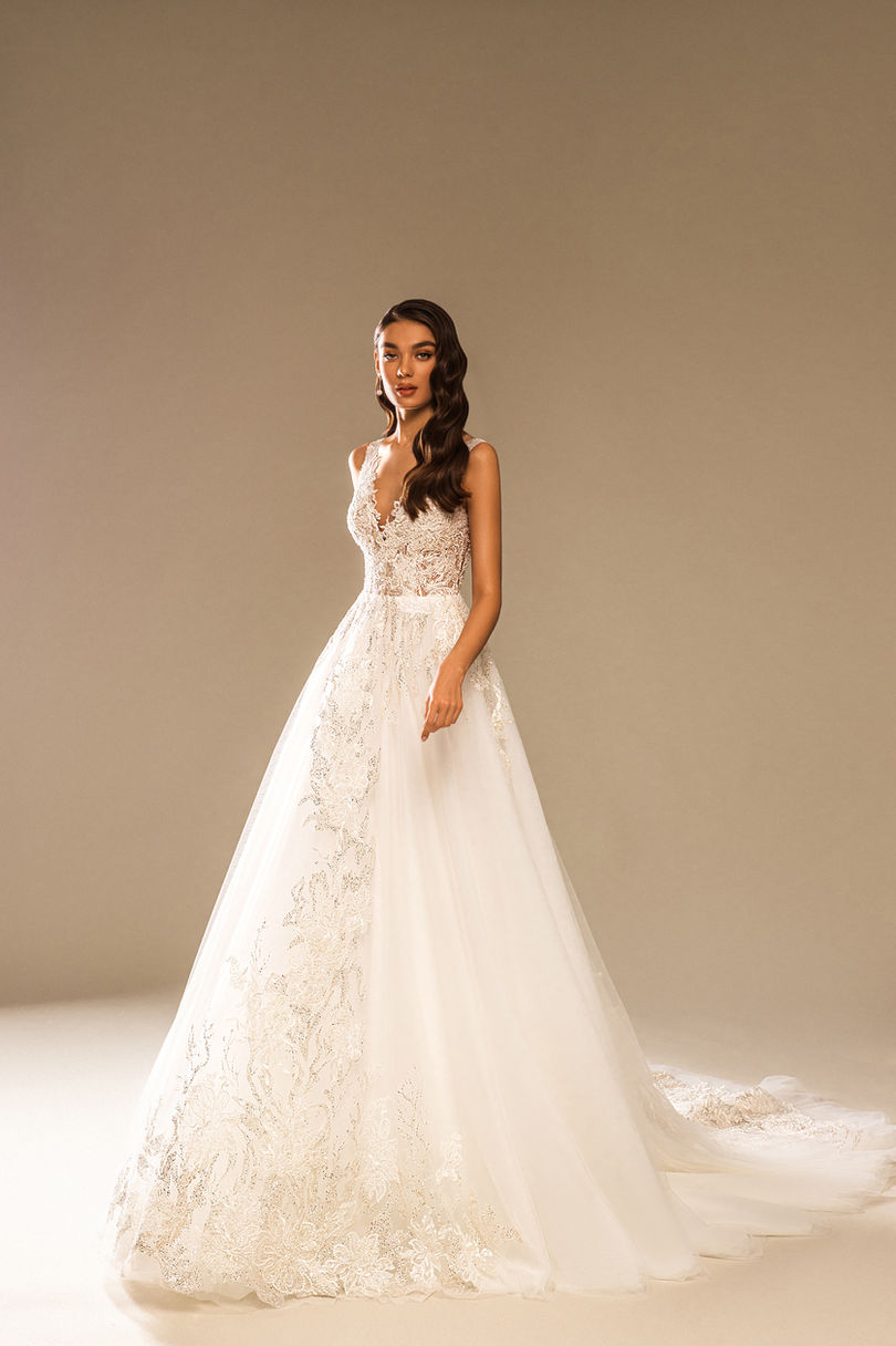 Această rochie de mireasa întruchipează rafinamentul suprem: corsetul brodat și fusta din tulle vaporoasă sunt lucrate cu minuțiozitate. Croiala impecabilă alungește silueta, iar detaliile aplicate subtil transformă fiecare pas într-un spectacol. Versatilă și sofisticată, poate fi purtată și ca rochie de seara la recepții exclusiviste. Finisajele delicate adaugă o notă de eleganta care completează orice poveste de stil, iar linia fluidă subliniază natura feminina a purtătoarei, oferind încredere la orice eveniment formal.